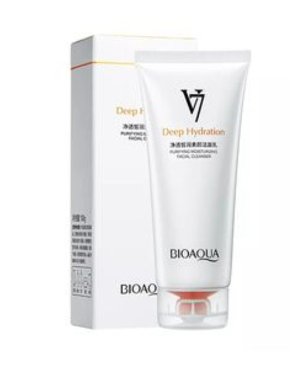 فوم شستشو V7بیواکوا روشن کننده پوست شفاف کننده پوست فوم شستشو بیوآکوا کنترل چربی پوست و بهبود خشکی نرم کننده و درخشان کننده پوست پاک کننده عمیق پوست و منافذ مرطوب کننده و مغذی حاوی عصاره آووکادو آبرسانی پوست