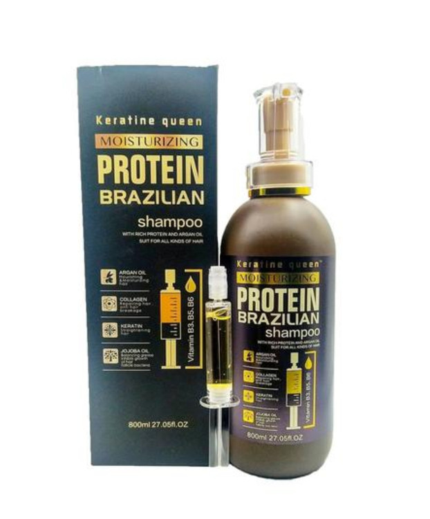 این شامپو سرشار از ویتامین های B6، B5، B3 است. همچنین فاقد سولفات و پارابن است پس با خیال راحت ازش استفاده کنید چون این شامپو هیچ گونه عوارض جانبی ندارد. شامپو پروتئین برزیلی بدون سولفات keratin queen برای موهای رنگ شده، کراتین شده و آسیب دیده بسیار مناسب می باشد. فرمولاسیون این محصول چربی پوست سر و مو را متعادل می کند.در فرمولاسیون این شامپو از کراتین، آرگان خالص، کلاژن و جوجوبا استفاده شده است. این ترکیبات بی نظیر به احیای دوباره موهای آسیب دیده کمک می کنند و با ترمیم شکستگی موها، موهای شما ابریشمی و صاف می شوند. این شامپو تغذیه لازم را به موهای شما می رساند و با تقویت ریشه مو از ریزش موهای شما جلوگیری می کند.شامپو فاقد مواد مضر شیمیایی می باشد و با آبرسانی و تغذیه مناسب کراتین، پروتئین و رنگ مو را ثابت نگه می دارد.