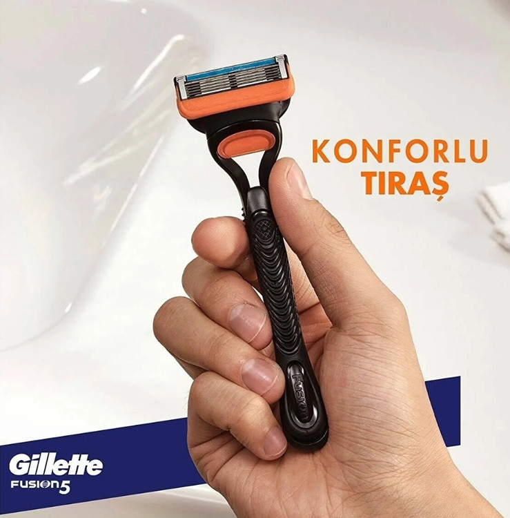 اگر تمایل به تجربه یک اصلاح حرفهای و نزدیک به پوست را دارید ریش تراشهای برند ژیلت مدل فیوژن بهترین انتخاب برای شماست. ژیلت فیوژن 5 لبه همراه با 1 یدک اضافه ژیلت از پنج تیغه برنده و ضد زنگ با فاصله نزدیک بهم برخوردار است. ارمغان آن یک اصلاح بسیار تمیز و بدون نیاز به بازگشت چندباره به نقاط مختلف پوست است. نوار آبی رنگ بالای کارتیج در تماس با آب ماده روانکننده ای را روی پوست منتشر میکند. این ماده باعث لغزندگی ژیلت بر وی پوست میشود. همچنین این نوار حاوی ویتامین E و آلوئورا بوده که از التهاب و حساسیت پوست جلوگیری میکند. کارایی دیگر نوار ژل تعیین زمان تعویض سری ژیلت است. نوار در طی گذشت زمان، کمرنگ شده و میتواند زمان کاهش برندگی تیغها را مشخص نماید. گارد نارنجیرنگ در قسمت پایین خودتراش از سطح پوست به خوبی مراقبت نموده و از خراشیدگی و بریدگی جلوگیری میکند.ژیلت فیوژن 5 لبه همراه با 1 یدک اضافه ژیلت انعطافپذیر و متحرک است. این سری بهراحتی بر روی پوست حرکت نموده و به تمام نقاط قابلیت دسترسی دارد. همچنین قابل تعویض است و پس از کند شدن تیغهها میتوانید سری ژیلت را تعویض نمایید.ویژگی های محصول: