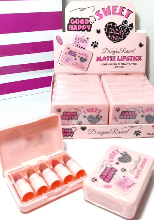 فروش عمده پک رژلب 5 عددی دراگون رانی GOOD HAPPY