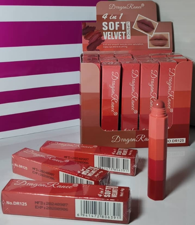 رژ لب جامد 4 طبقه دراگون رانی Dragon Ranee رنگ A و B فروش فقط عمده 24عددی