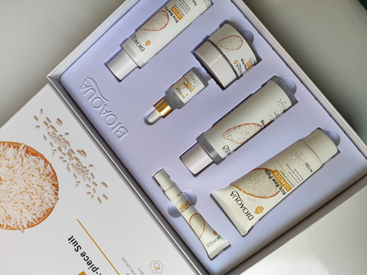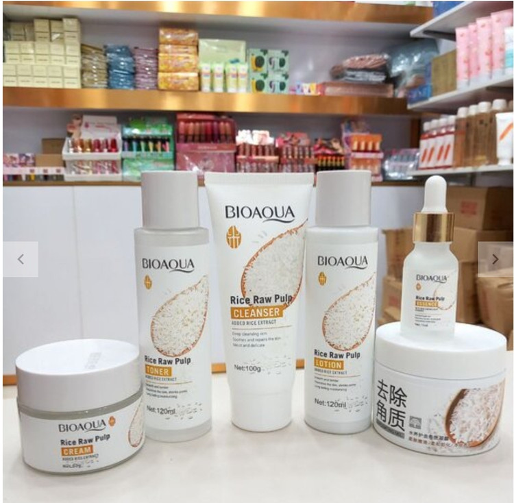 پک روتین مراقبت پوستی ۶تکه عصاره برنج اورجینال بیوآکوا مرطوب کننده رفع خشکی پوست کمک به کاهش منافذ باز جلوگیری از ایجاد چین و چروک مغذی و شاداب کننده پوست تاریخ انقضا :۲۰۲۵ فوم شست و شو :۱۰۰گرم تونر:120ML کرم دور چشم برنج سرم:15ml کرم کاسه ای:۵۰گرم اسکراب برنج: 140ml